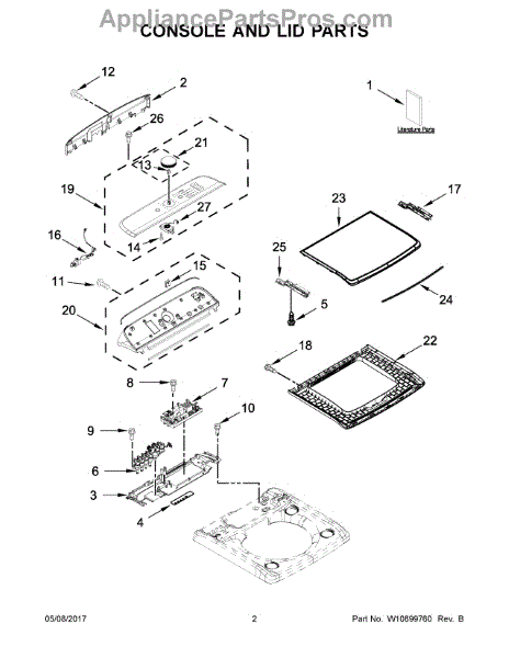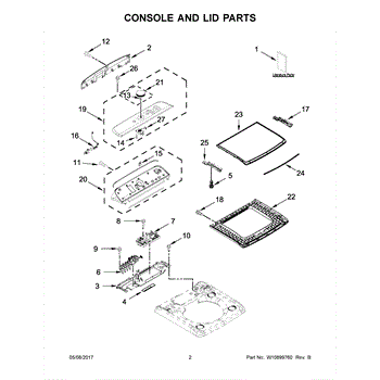 The Upper Lid Assembly is an OEM part for Whirlpool washing machines. It covers the opening at the top of the washer tub during operation to safely circulate water. The lid assembly contains seals that ensure a tight seal when closed to prevent leaks.