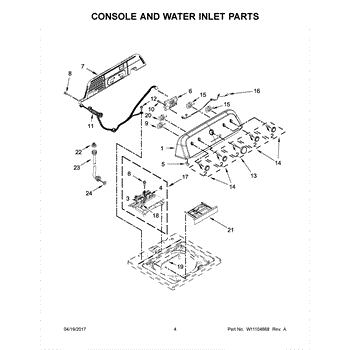 The Console Clip is an OEM part compatible with Whirlpool dryers. This clip secures the control console assembly to the top panel, ensuring it is firmly mounted during operation. Properly functioning clips are necessary to maintain the correct alignment of controls and prevent detachment.