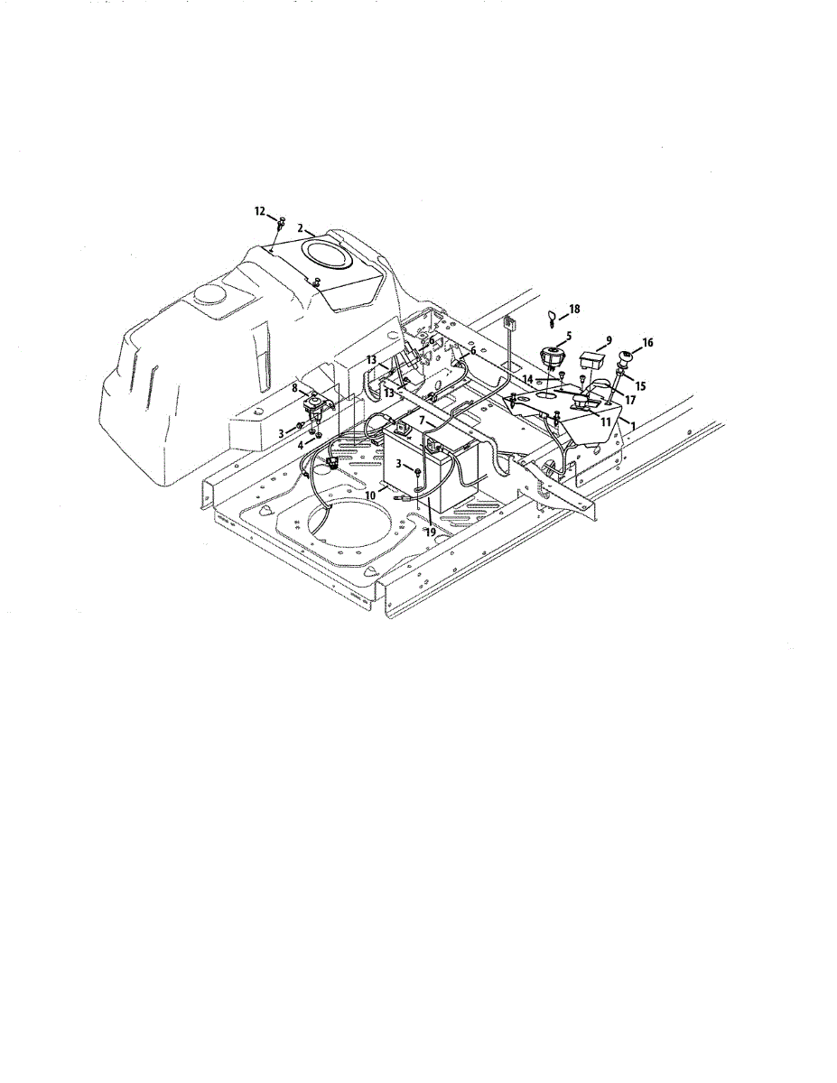Battery retainer for riding mowers and tractors. Secures the battery in place during operation. Replace if cracked, broken, or missing to prevent movement.