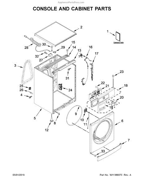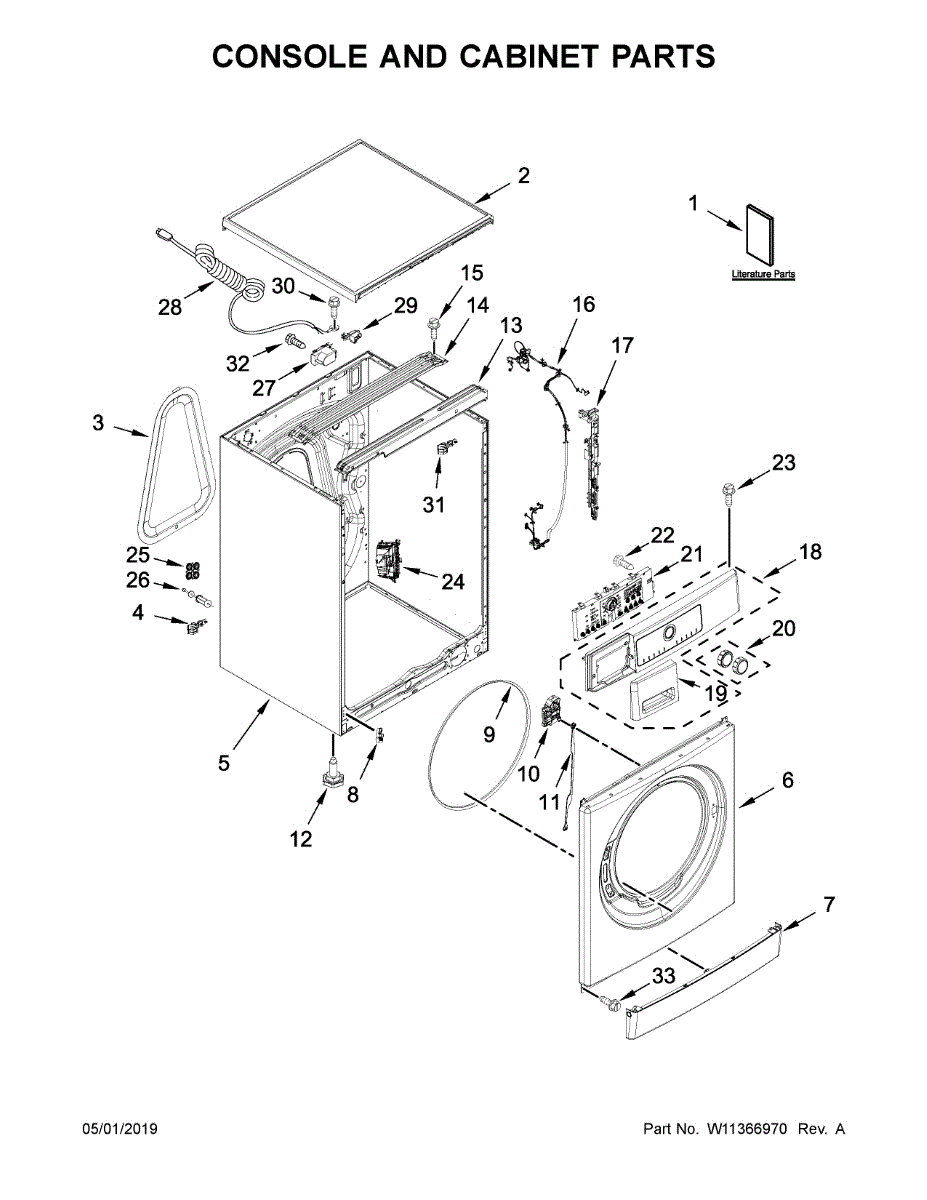 This console is the control panel assembly that holds the user controls and display so you can select cycles, start and monitor the appliance. It restores the interface and front-facing housing for proper operation and appearance. What it does: