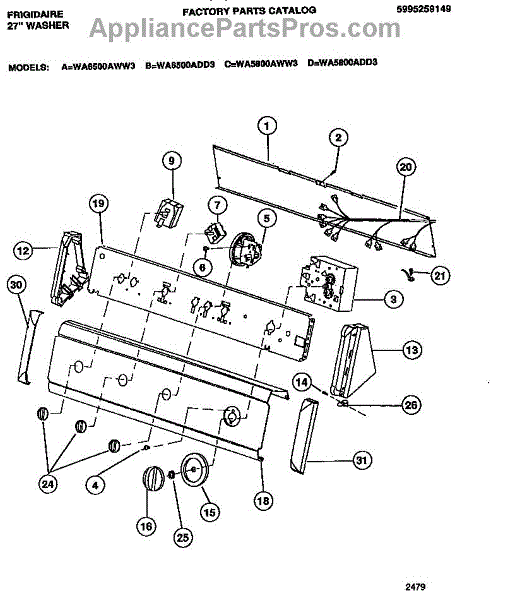 Parts for Frigidaire WA5800AWW3: 05 - Console & Console Controls Parts