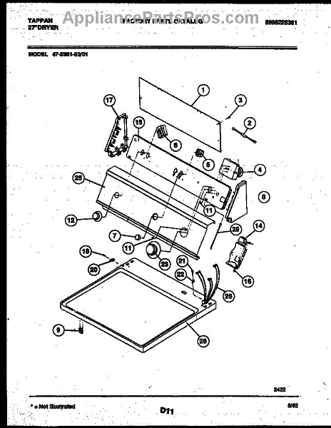 This dryer timer is the cycle control that advances your dryer through Timed and Auto Dry settings. Replacing a failed timer restores proper cycle progression, start/stop, and end-of-cycle shutoff.