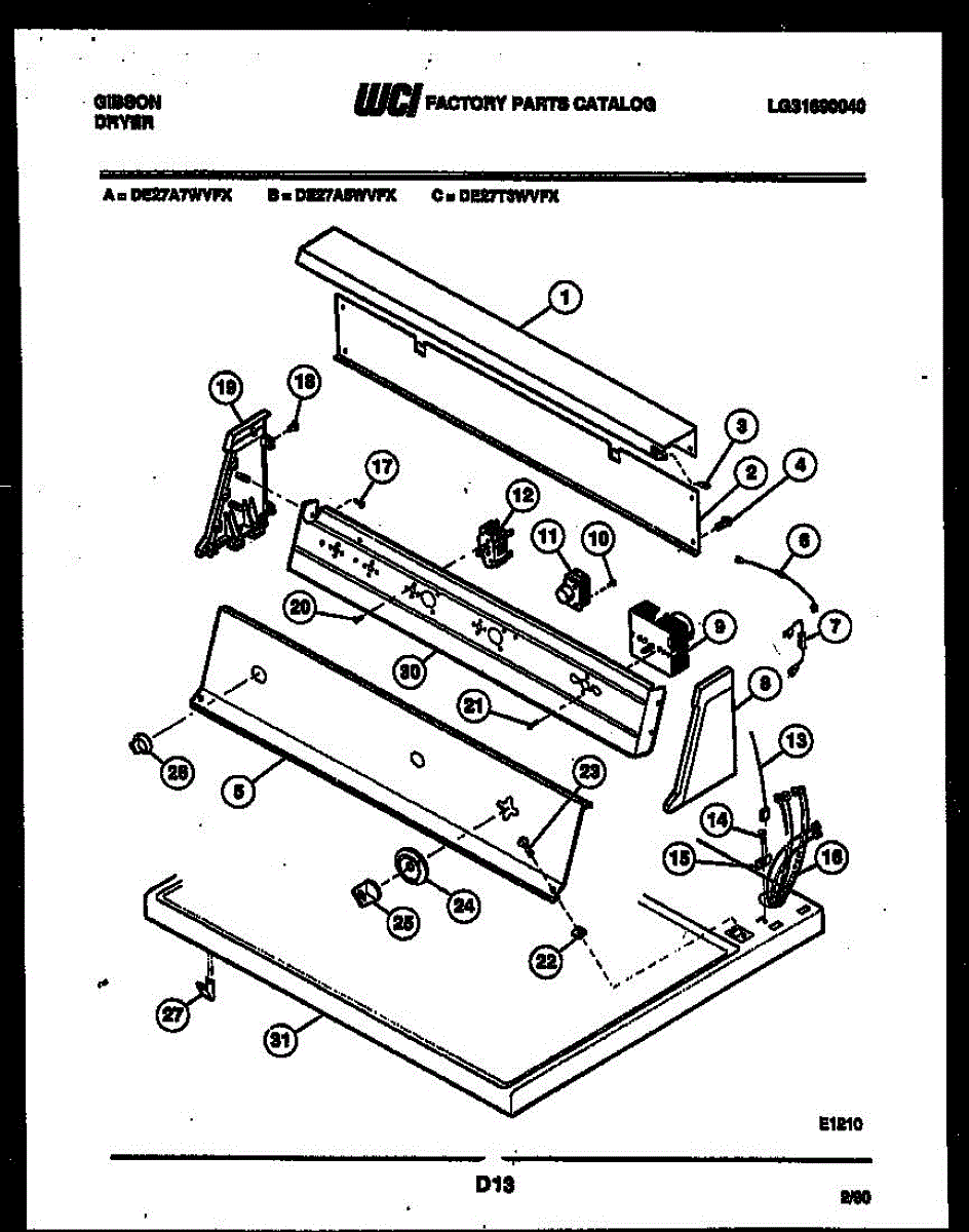 Parts for Frigidaire DE27A5WVFX: 04 - Console And Control Parts