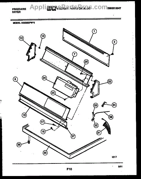 Parts for Frigidaire DE8600PW0: 04 - Console And Control Parts