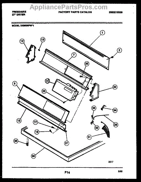 Parts for Frigidaire DE8800PW1: 04 - Console And Control Parts