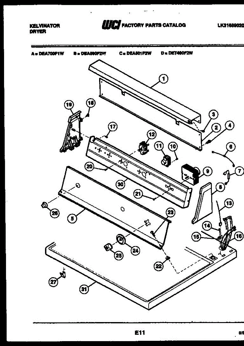 Parts for Frigidaire DEA501F2D: 04 - Console And Control Parts
