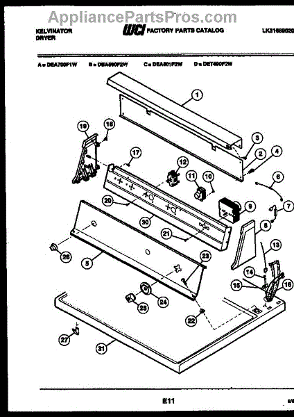Parts for Frigidaire DEA501F2W: 04 - Console And Control Parts