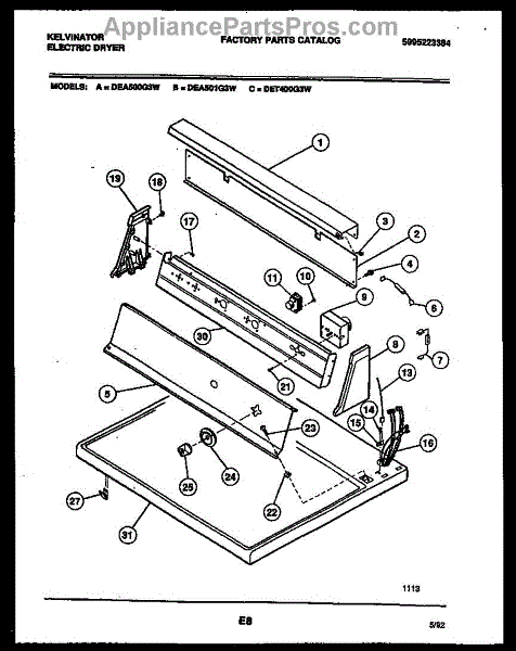 Parts for Frigidaire DET400G3D: 04 - Console And Control Parts