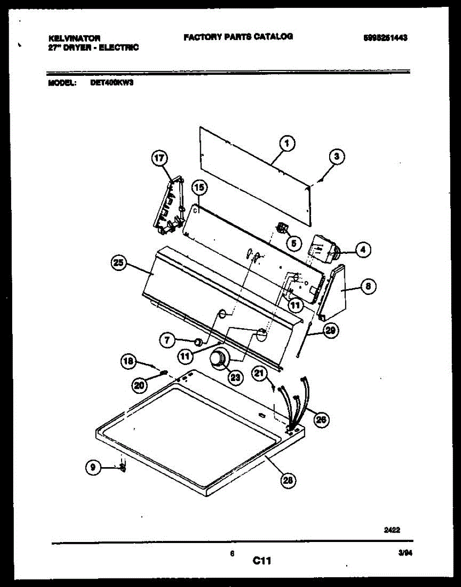 Parts for Frigidaire DET400KD3: 04 - Console And Control Parts