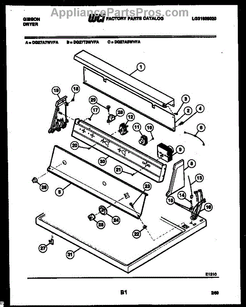 Parts for Frigidaire DG27T3WVFA: 04 - Console And Control Parts