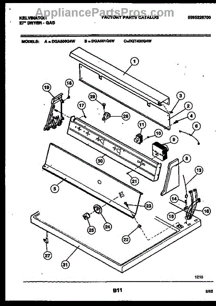 Parts for Frigidaire DGA501G4W: 04 - Console And Control Parts