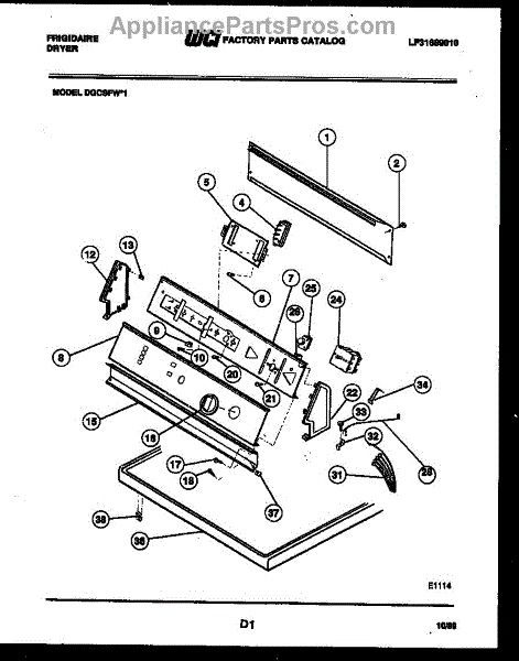 Parts for Frigidaire DGCSFL1: 04 - Console And Control Parts