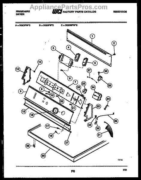 Parts for Frigidaire DGDFH2: 04 - Console And Control Parts