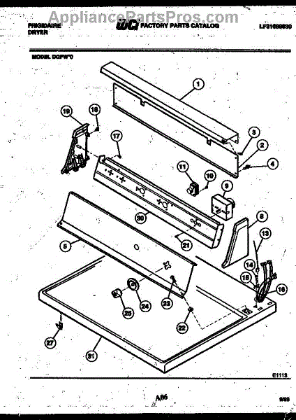 Parts for Frigidaire DGFW0: 04 - Console And Control Parts