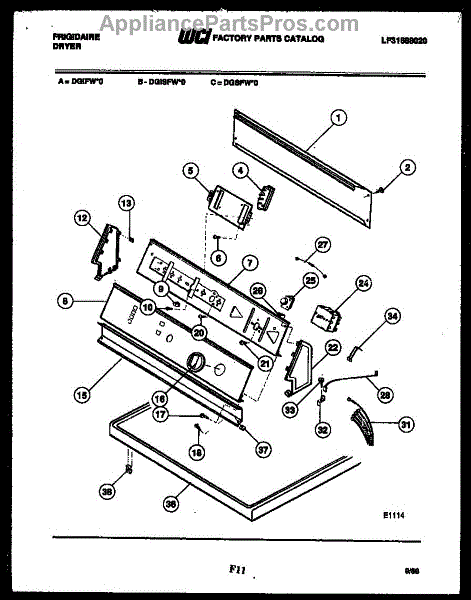 Parts for Frigidaire DGIFW0: 04 - Console And Control Parts