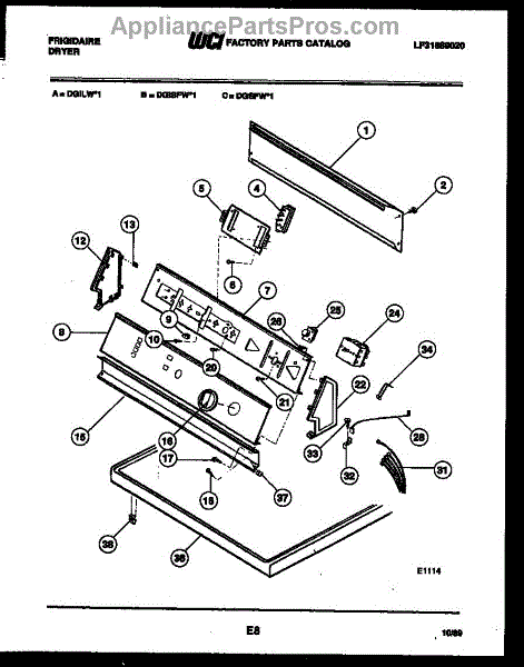 Parts for Frigidaire DGSFW1: 04 - Console And Control Parts