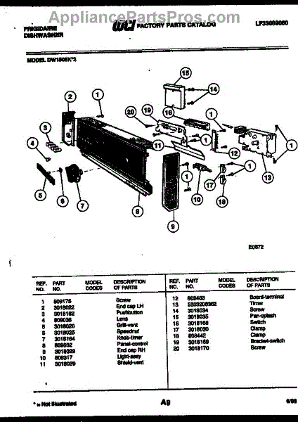 Parts for Frigidaire DW1085KW2: 02 - Console And Control Parts