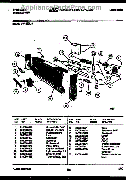 Parts for Frigidaire DW1800LW3: 02 - Console And Control Parts