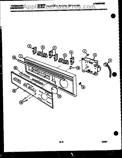 Parts for Frigidaire DW5500FW1: 02 - Console And Control Parts