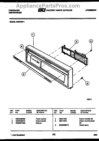 Parts for Frigidaire DW6700LW1: 02 - Console And Control Parts