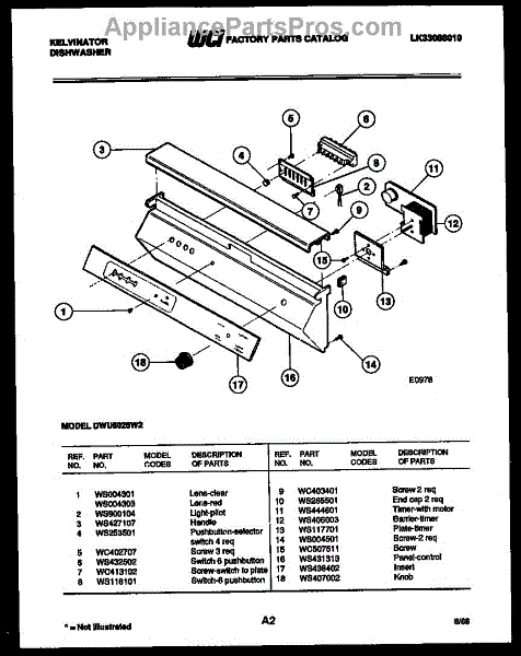 Parts for Frigidaire DWU6025W2: 02 - Console And Control Parts