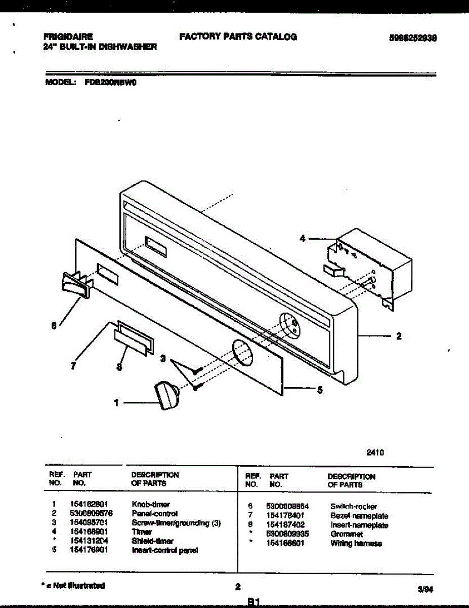 Parts for Frigidaire FDB200RBW0: 02 - Console And Control Parts