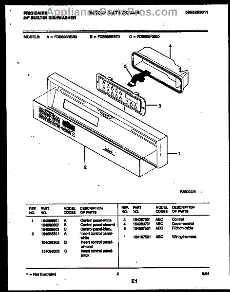 Parts for Frigidaire FDB898RBT0: 02 - Console And Control Parts