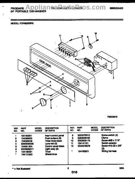 Parts for Frigidaire FDP652RBR0: 02 - Console And Control Parts