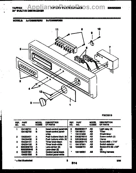 Parts for Frigidaire TDB668RBR0: 02 - Console And Control Parts