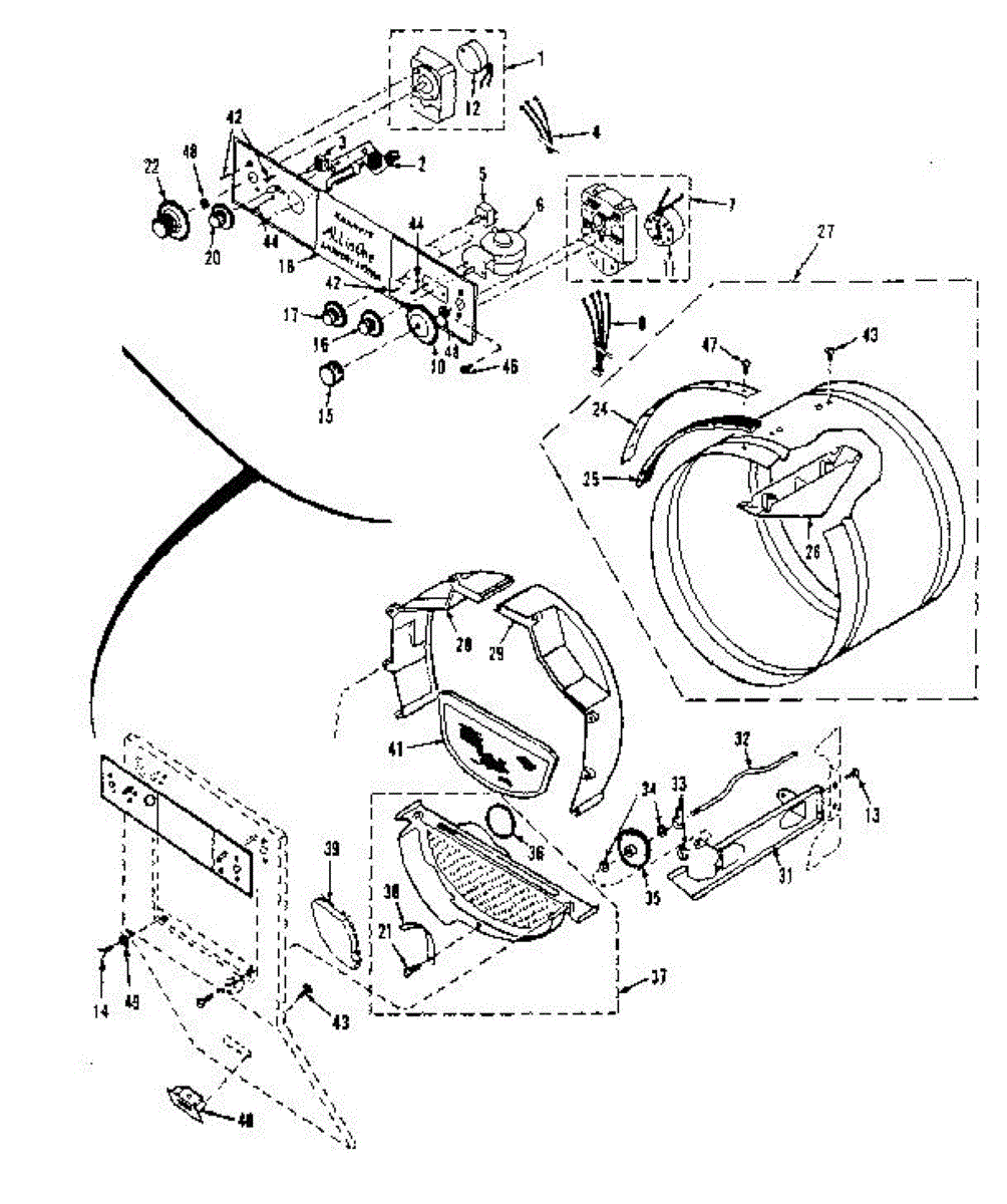 Parts for Kenmore 417.89395710 (41789395710, 417 89395710): Console Controls, Drum Parts