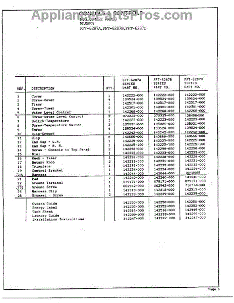 Parts for Frigidaire 6287C: Console / Controls Page 2 Parts