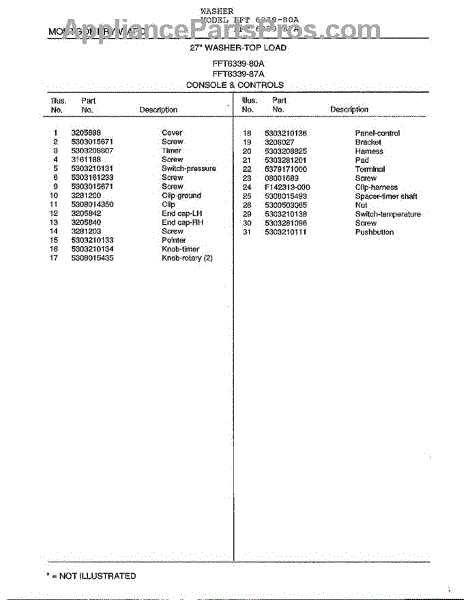 Parts for Frigidaire 6339A: Console And Controls Page 2 Parts