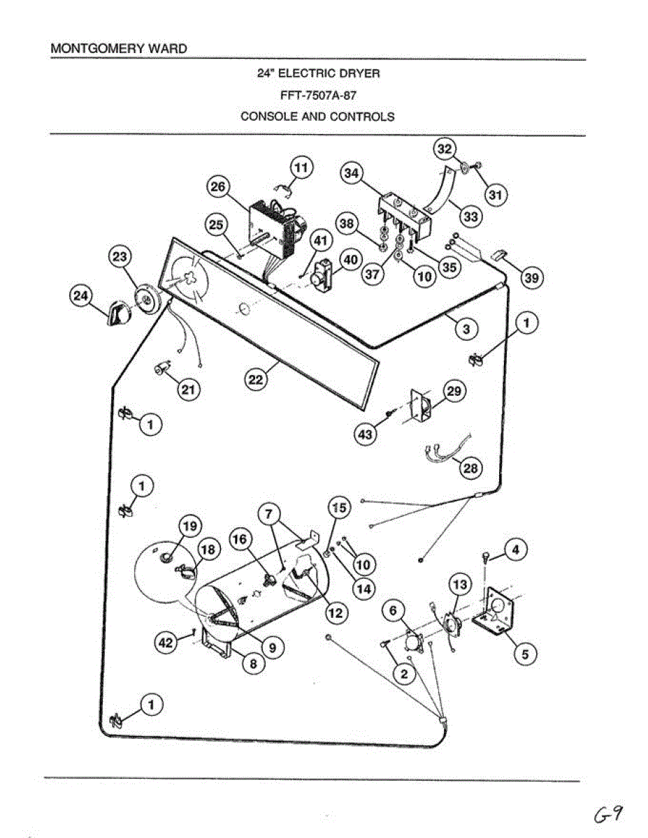 Mounting screw for dryer assembly and panel installation. Replace if stripped, missing, or corroded. Essential hardware for secure component attachment.