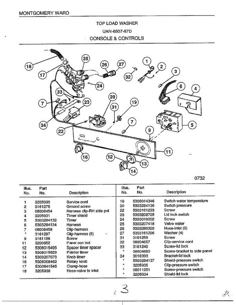 Parts for Frigidaire 6507-87D: Console And Controls Parts