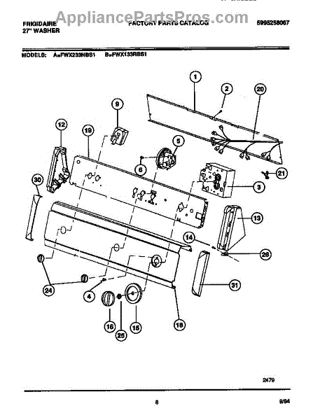 Parts for Frigidaire FWX233NBS1: 05 - Console & Controls Parts