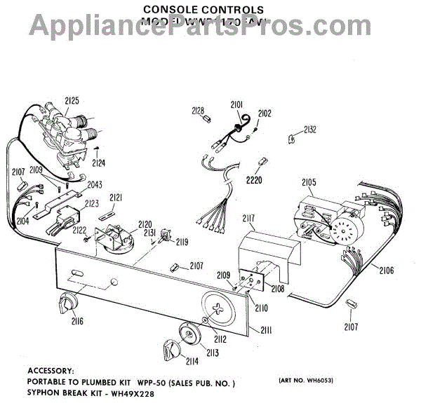 Parts for Ge WWP1170FAW: 01 - Console Controls Parts