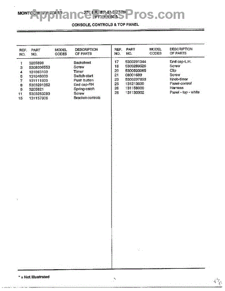 Parts for Frigidaire 7001-80A: Console / Controls And Top Panel Page 2 Parts