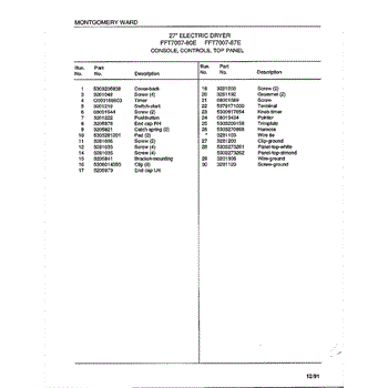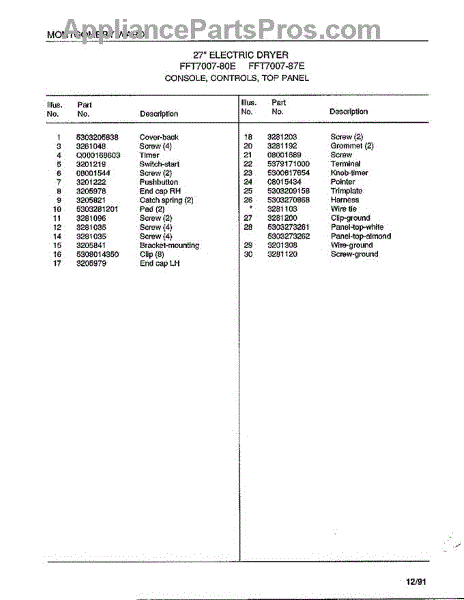 Parts for Frigidaire 7007-80E: Console / Controls / Top Panel Page 2 Parts