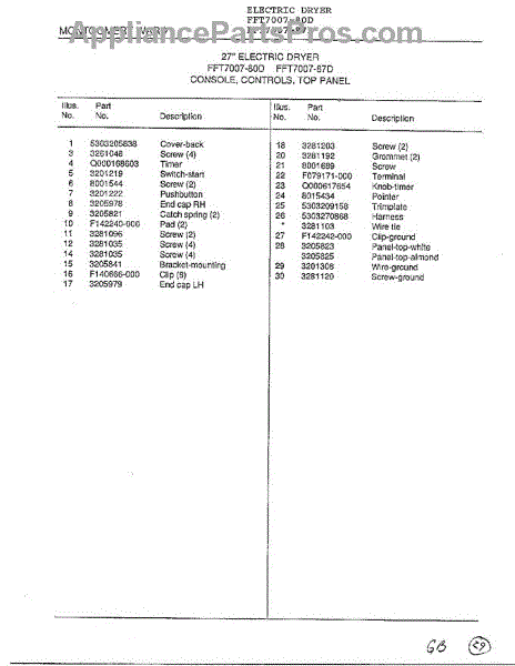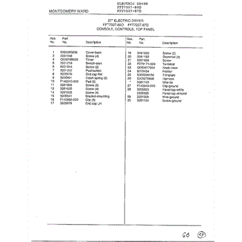 Parts for Frigidaire 7007-87D: Console, Controls, Top Panel Page 2 Parts