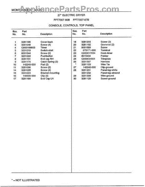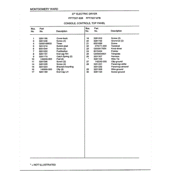 Parts for Frigidaire 7007B: Console, Controls, Top Panel Page 2 Parts
