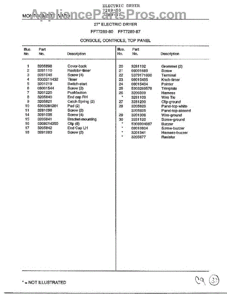 Parts for Frigidaire 7289-80: Console, Controls, Top Panel Page 2 Parts