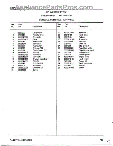 This factory replacement screw secures panels, brackets, or trim on your appliance so parts stay tight and aligned. Swap in a new screw when one is missing or stripped to restore a solid, rattle-free fit.