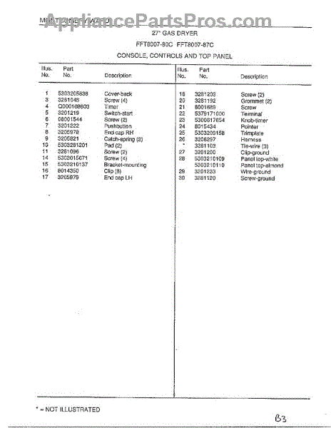 Parts for Frigidaire 8007-80C: Console / Controls / Top Panel Page 2 Parts