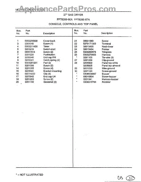 Parts for Frigidaire 8289-80A: Console / Controls / Top Panel Page 2 Parts