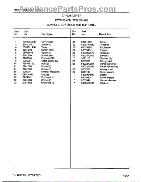 Parts for Frigidaire 8289-80B: Console / Controls And Top Panel Page 2 Parts