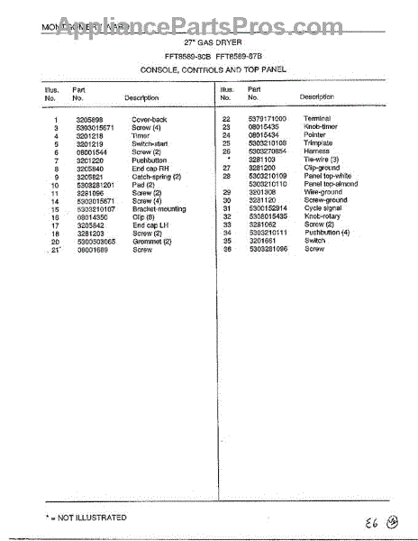 Parts for Frigidaire 8589-80B: Console / Controls / Top Panel Page 2 Parts
