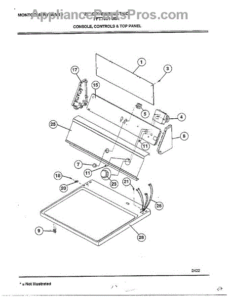 Pan head mounting screw for dryers. Secures internal components and panels. Replace if stripped, missing, or damaged during appliance maintenance.
