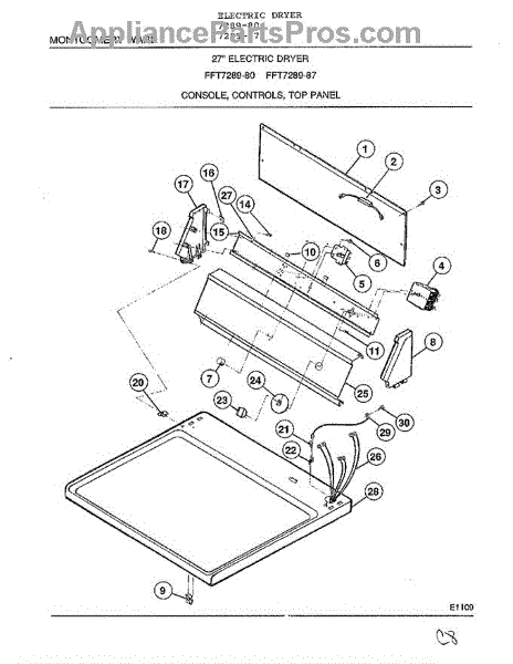 Parts for Frigidaire 7289-87: Console, Controls, Top Panel Parts