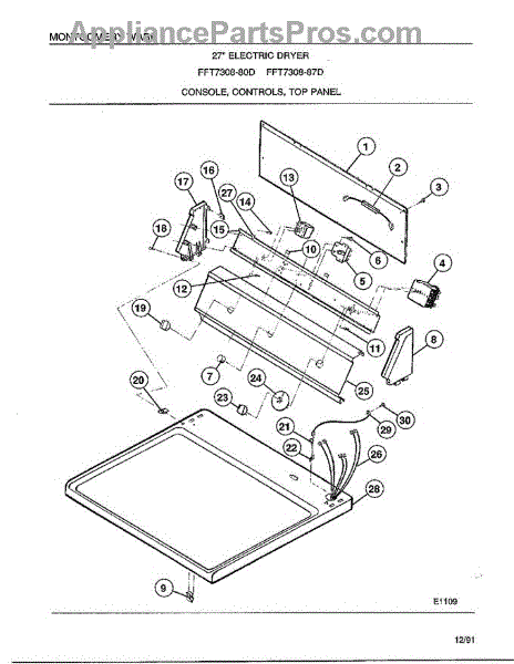 Parts for Frigidaire 7308-80D: Console / Controls / Top Panel Parts