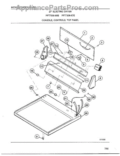 Parts for Frigidaire 7308-80E: Console / Controls / Top Panel Parts